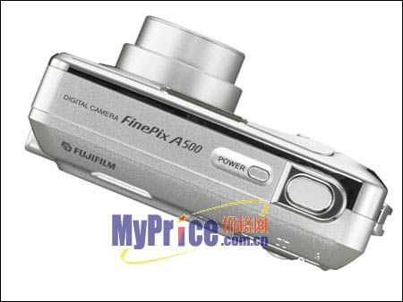 富士A500的外型设计有点类似于原F系列的F10、F11机型,让它比原来的A系列产品显得小巧多了。A500采用1/2.5英寸富士Super CCD,有效像素数达510万,可用于打印最大A4尺寸的高质量图像。配置了薄型3倍光学变焦镜头,最高感光度ISO400,光圈范围F3.3至F8.5,最近约10cm的微距拍摄功能。其快门速度为2-1/1500秒。