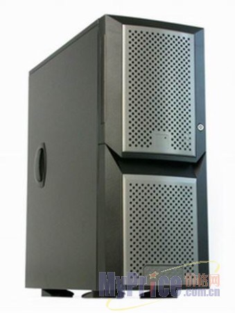 这款机箱的外观显得非常庄重,黑色外表配合白色的镂空面板,附带四个底座支架,看上去就是一个服务器,它确实也有成为服务器机箱的实力,它内部有4个5.25英寸仓位和4个3.25英寸仓位,前置USB2.0、IEEE1394、耳机、麦克风扩展接口一应具全。伟训6920做工非常严谨,用料大气,让我们看到曾经从事汽车制造业的伟训科技的实力。