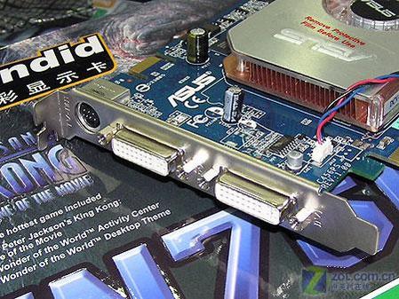 输出部分,华硕7600GT显卡采用了顶级显卡上常见的双DVI+多功能视频输出接口的组合,考虑到目前D-Sub接口的设备仍是主流,华硕在显卡的附件中为用户提供了DVI/D-Sub转接头。