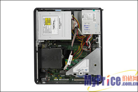 配置上,GX620采用Intel奔腾D双核820处理器(2.8GHz主频,2MB二级缓存,800MHz前端系统总线),应用英特尔945G芯片组,集成GMA950显卡,支持512MB DDR2内存,配备80GB 7200转高速硬盘,DVD光驱,另外,该机器还集成Broadcom 10/100/1000以太网,附带Dell入门级QuietKey键盘及双键USB鼠标。