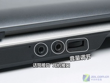 笔记本正面的接口不是很多,音频接口和无线网卡开关等常用的功能被设计在了这里,另外需要说明的是本本的前方还特意设计了一个调节音量的旋钮,让用户使用起来非常方便。