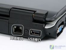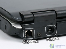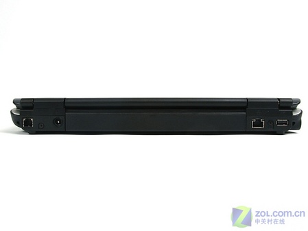 笔记本背面的接口主要是网络接口,调制解调器和1000M网卡的接口均设计在了这里,而这里的USB接口是用来连接鼠标的,这样用户使用时表就不会被USB的接头所阻碍。