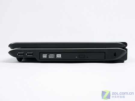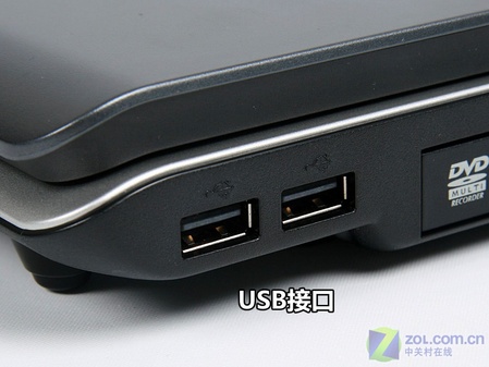 笔记本的另一侧,除了DVD刻录机外还有两个USB接口。这两个USB主要用来连接移动硬盘以及优盘,因为在右侧所以使用起来会非常方便。