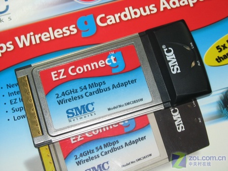 由美国Accton(智邦)公司出品的SMC牌产品在去年的网络设备市场上曾经火爆一时,也许是由于厂家推广力度不够的原因,现在我们在市场上已经很难看见这个牌子的产品了。最近笔者在中关村市场上发现有经销商正在以100元的低价抛售一款SMC的54M笔记本无线网卡SMC2835W,这个价格也使这款网卡成为目前最便宜的笔记本无线网卡。