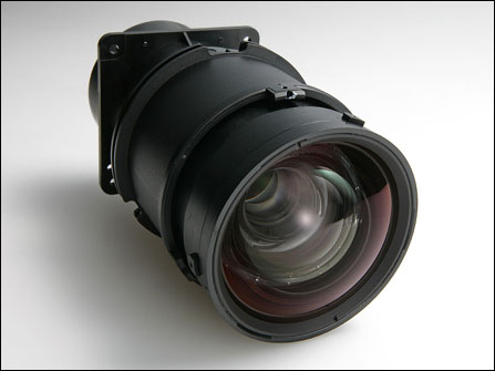 本机的镜头系统由12群14枚非球面镜头和低分散ED镜头组成,能够有效抑制内部光线反射,最高可达12000:1的高对比度,且具备2.1倍手动变焦能力,100寸画面最少需要3.0m投影距离,上下方向±96%、左右方向±47%的镜头移动机能也有配备,具备良好的短焦机性能。