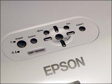 据实测,连接HDMI接口后从开机到出现爱普生标志需要12秒,再用6秒出现实际影片画面,总共耗时18秒,启动速度即使与主流投影机相比也一点都不慢,非常地难能可贵。 在进行各类操作时,消费者可以使用主机顶部提供的按钮群操作来实现。