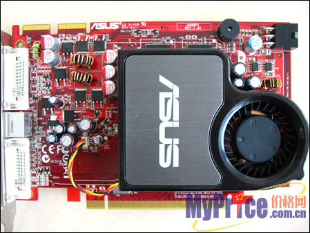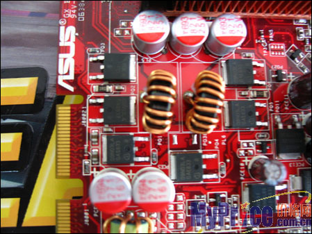 显卡采用了核心、显存分体式供电设计,并采用了大量超低阻抗的日系红宝石电容和KZG电容。核心采用两相供电,显存采用独立的一相供电设计。为了满足超频型显卡的稳定运行,华硕特为此卡设计了单独6pin供电接口,充分保证了显卡的性能。