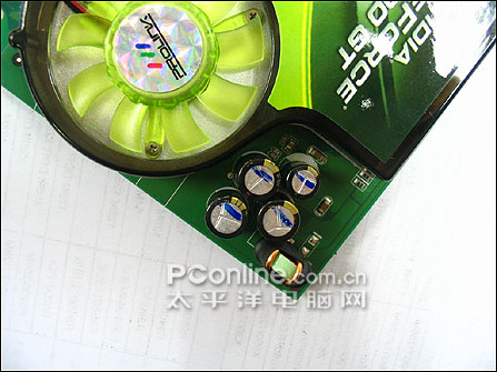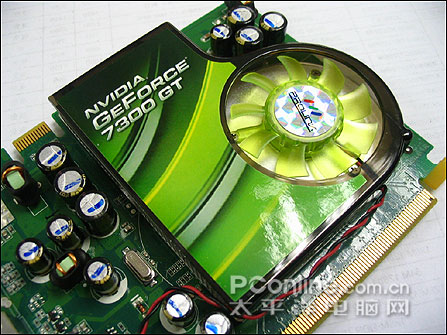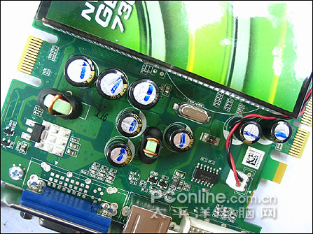 供电方面,7300GT海外版III代采用了如今较为之普遍的分离式供电设计,并搭配了大量的日系高品质松下电容,为显卡长时间稳定运行提供了保障。