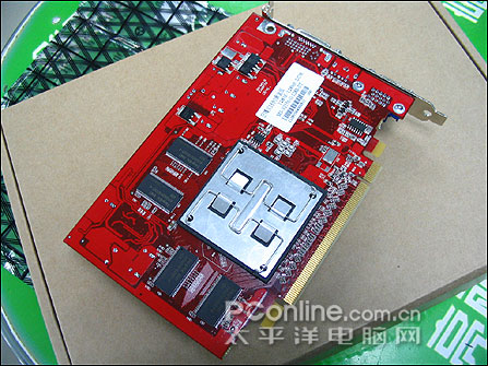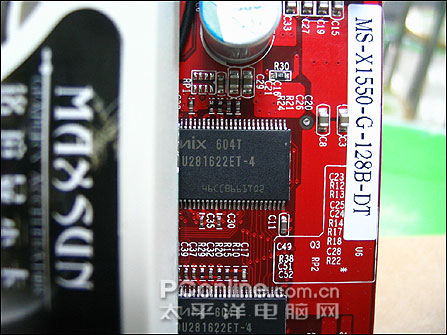 铭?狂镭X1550黄金版使用ATI惯用的火红色PCB,整体做工较为讲究,元件整齐而不拥挤,有助空气流通以加强散热能力。显卡核心基于最新的RV516核心,使用80nm工艺制造,内建4条象素渲染管道和2个顶点渲染单元,支持DirectX9.0C和SM3.0特效,核心频率为550MHz,高于X1300标准频率。