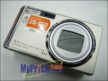 理光R30配置上采用一块1/2.5英寸CCD,有效像素为513万。具备了双回缩镜头系统提供了5.7倍光学变焦,跟之前的R3相比7.1倍变焦略显逊色。但在依旧是26mm的机身下28mm广角和5.7倍长焦同时兼得实属难得之举。采用相当于 35mm相机的28-160mm焦段,完全适合风景、人像等多种情景拍摄。加上R30同样具有1cm微距能力,精雕细小事物游刃有余。