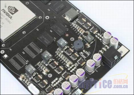 盈通这款G8800GTX的供电部分用料十分豪华,大量的三洋SVP固态电容组成滤波电路保证了供电效果,盈通剑龙G8800GTX-768GD3豪华版板载了2个PCI-E 6Pin外接电源的接口,高端卡果真都是功耗大户。