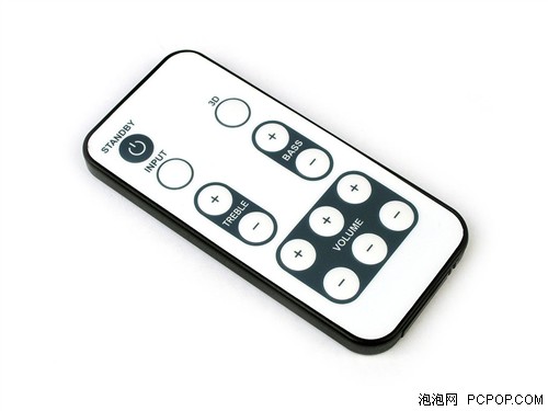 麦博FC550本次配备了一个超薄的遥控,功能简单,具备一个虚拟3D环绕的功能,难能可贵的是还支持待机状态。对于那些懒得去伸手关闭电源的用户来说非常实用。我们感受了一下遥控器的控制能力,发现遥控距离和角度都比较理想,其实多媒体音箱本身就不会距离我们太远,对距离的要求并不高。