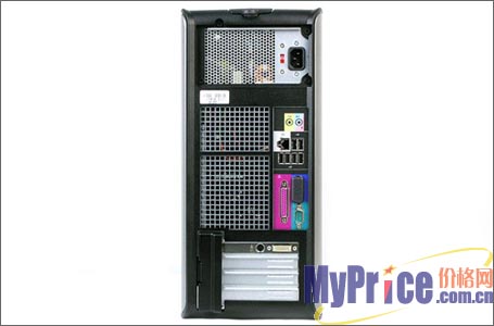 外部端口方面,DELL Optiplex 745配备有6个USB 2.0端口(2个前置4个后置),1个串口,1个并口,1个VGA端口,RJ-45网络端口,麦克风,立体声输入,立体声输出,耳机插口等,相当齐全。并且,机器集成 10/100/1000M以太网卡。