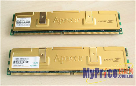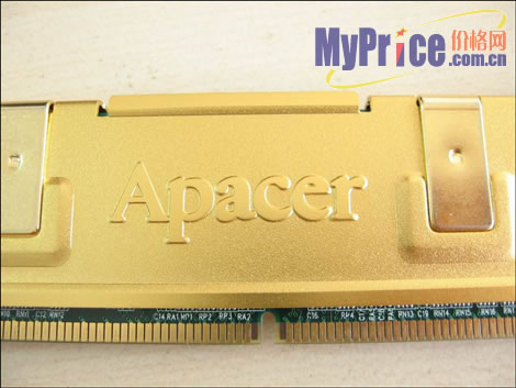这款内存的金色散热片表面磨沙非常有质感,中间突兀出的Apacer是宇瞻的英文标识,作为全球十大内存厂商之一,Apacer在世界上的声誉非常高。