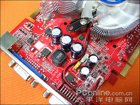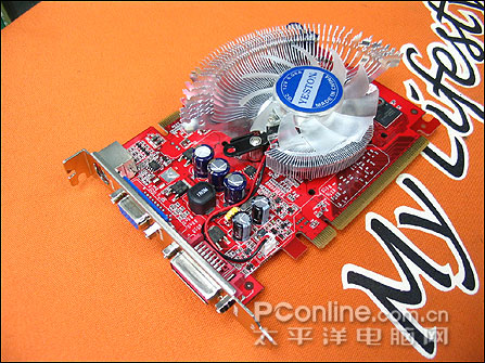 散热方面采用了类似超频三风扇的散热装置,放射式散热片搭配一个静音风扇,能提供良好的散热效果,保证显卡在高频运作下的稳定性能。