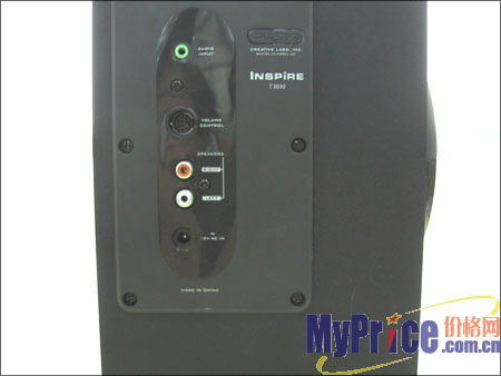 与大部分创新音箱一样,T3030也配备了线控器,上面设置有音箱的电源开关、主音量和低音调节,调节钮的阻尼适中,手感不错。另外,上面还设有耳机插孔,可以方便地接驳耳机,即使夜深人静的时候也可以随心所欲地欣赏音乐,不必担心影响他人。