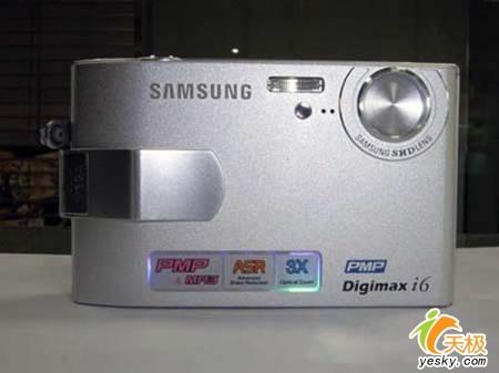 三星i6采用一块1/2.5英寸的610万像素CCD,最大分辨率为2816×2112。使用焦距等效于传统35mm相机的39-117mm、最大光圈F3.5-F4.5的3倍光学变焦镜头,数码变焦为5倍。ISO为50-400。快门速度是:16-1/2000秒,同时具备VSR电子防抖功能。