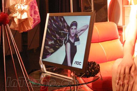 "魔镜" Mirror 199P+是AOC一款专门为女性设计的19寸液晶显示器,它强调外观设计理念,以不对称的外观设计突破了显示器传统四方中庸的外形设计理念,受到参会人员的一致关注。