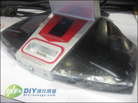 显示器顶部的贴纸介绍了这款显示器的新型技术。ViewDock:显示扩展坞。HD high-performance widescreen digital LCD?高性能宽屏数字液晶显示器。Experience iPod music,video,photos,gaming?体验iPod 音乐、视频、照片、游戏。