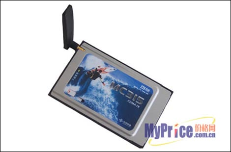 中兴MC315 结构采用PCMCIA Type II型尺寸85.6X 54X 5.0mm,考虑携带方便和国内使用习惯,结构尺寸是所谓的短卡形式,机身外露部分小于5mm。