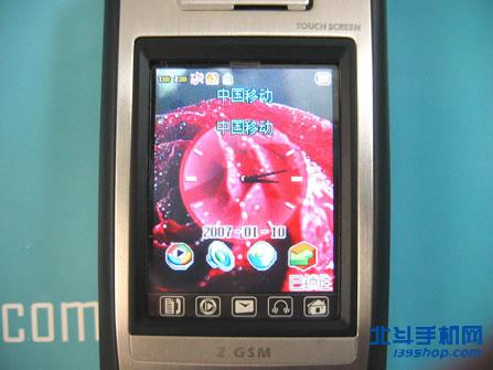 天珑X1采用的是262K色TFT彩色触摸屏,屏幕象素为176×220,由于在屏幕最下方“置底”了电话簿、动画播放器、短信、音乐播放器、网络服务五个快捷触摸按键,所以X1的实际屏幕显示大小应该是2寸,对于一款体积纤薄的触屏手机而言还是完全够用的。