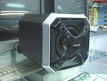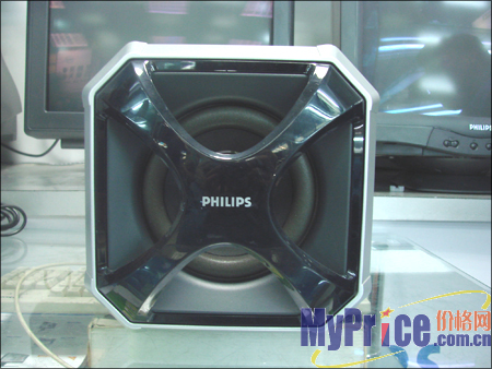低音炮的造型非常独特,采用全木质材质,相当有质感,前面板的防护罩是一个“X”型,防护罩中间是飞利浦的经典英文LOGO,黑色的有机玻璃搭配银白色的边框,给整个低音炮带来不少时尚感。