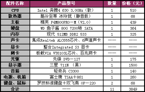 对于目前的装机来说,在低端用户群体中AMD要胜于Intel平台,不过随着Intel不断的降价,特别是P4 630低价杀入市场以来,又夺回不少用户,今天笔者就给消费者推荐一套非常超值的P4 630+液显方案,希望对于想装机的用户有所帮助。