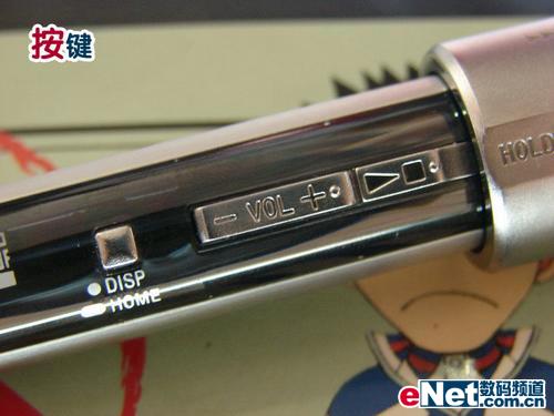 它的屏幕是单行显示的OLED彩屏,虽然是单色,但是比起shuffle系列来说,功能还是要强大的多。它的按键分布在机身的底部,顶部和屏幕右侧,特别要介绍的是MP3上端的Jog-shuttle旋钮环型设计,这是索尼独有的,可以单手进行操作,简单方便,非常适合运动一族的朋友使用。