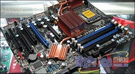 这款主板可支持1333MHz前端总线的E6850和800FSB的E4300,并且提供了三条PCI-E 插槽,可以支持nVIDIA SLi双卡并行,中间的8X PCI-E是为未来的物理加速卡预留的,内存方面可以支持8GB DDR2 800内存,还支持处理器和内存频率独立调节。