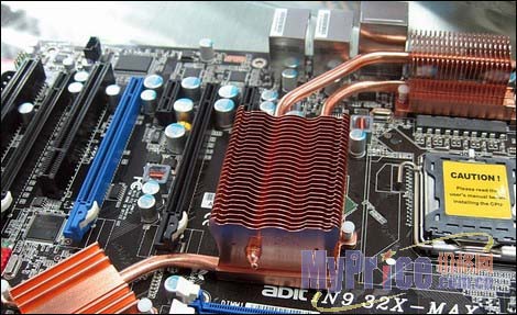 这款主板使用了升技自行研发的Slient OTES静音散热系统,通过一体式的纯铜热管散热器覆盖了主板上的北桥、南桥以及供电模块的MOSFET场效应管,散热效果非常优异。Digital PWM数字供电模块也出现在这款IN9 32X-MAX主板上,传统的电感电容被CSP封装的电感和多层陶瓷电容所取代,数字供电模块可以提供更精准的电压调控,可以让我们充分挖掘CPU的潜力。