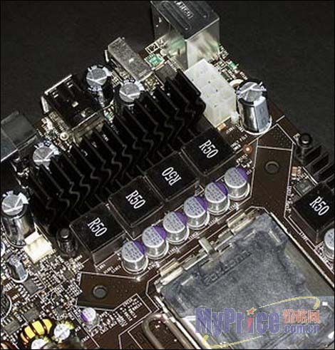 这款主板供电模组非常优秀,采用6相供电和固态电容以及高档封闭式陶瓷电感,确保高性能四核处理器稳定运行。波浪形状的黑色金属散热片加强了MOS管的散热功效,给系统带来稳定。