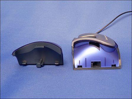 鼠标的拆解和安装并不烦琐,只要对应鼠标底部的“开关”轻轻一移就可以卸开,而对应安装合适的后背时也同样很简单。