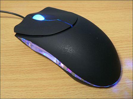 这款鼠标的形状和Raze制的鼠标一模一样,连接PC供电鼠标内部的LED点亮就给两旁点缀起来。作为鼠标的基本机能比较质朴,装备2个按键和3D滚轮。鼠标底面宽大,在鼠标垫上的操作感不错。