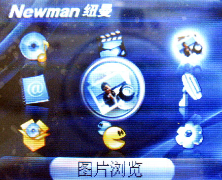 点评:纽曼N01的屏幕尺寸为2.0英寸,不过在分辨率方面并不逊色于2.2英寸的产品,因而显示效果依然非常精细。N01使用的是2606芯片,主菜单九宫格排列,界面尚算美观,只是偏蓝的色调并不是每个人都喜欢,菜单结构也与同芯片产品无异。另外按键采用的是分体式,因而操控感稍微不是太直接。