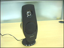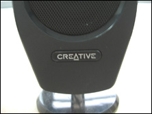 卫星箱使用的是塑料材质,采用双分频设计,上面各有两个扬声器,外面同样有一层金属防尘罩。卫星箱的下面是创新的英文LOGO,支架可以方便地进行拆卸,不过看起来稍显脆弱,背后设计了挂钩孔,可以将其挂在墙上使用,更加节省桌面空间。