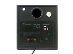 B3同样是采用了三分频的设计,但它的低音单元尺寸比B1来得更大,达到了6.5寸,重量足有8公斤左右,更大的低音单元给B3带来更强有力的低音表现,低音炮的背部有两路音频输入,这是一个创新的设计。