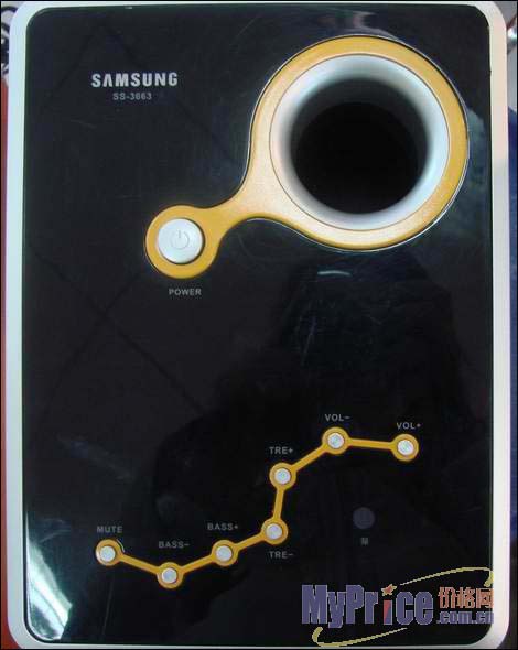 一般来说2.1音箱的卫星箱外型都是四四方方让人厌倦,但SS-3663的卫星箱做得非常漂亮,和主箱搭配在一起给人鲜明的印象。