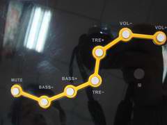 面板下方的各种调节钮:音量调节、高音调节、低音增益、静音开关被设计成漂亮的北斗七星状,非常吸引人。