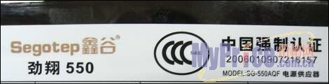 从铭牌上我们可以到劲翔550铭牌上通过了国内3C认证,并且这款电源也通过了严格的欧盟ROHS认证,是一款绿色的环保电源,承袭了鑫谷一贯对社会负责的态度。