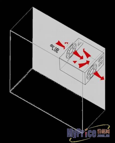 业界现在流行低转速大扇页降噪电源,这种外抽式电源确实可以有效降低噪音,但在重负载高发热量的情况下并不理想,低转速的风扇虽然可以带走电源盒内的热空气,但在散热器表面形成的空气流动并不大,积聚在散热片上的热量不能迅速散发,长时间使用非常容易引起故障,并且不利于超频。