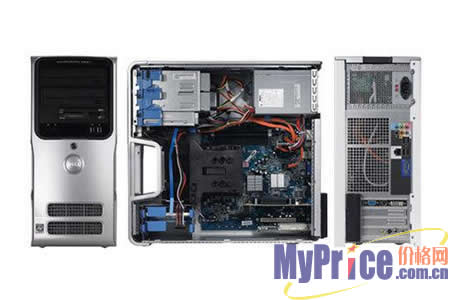 接口方面,DELL Dimension E520机拥有1个DVI、VGA及1个S-Video,7个USB端口 (前部2个,后部5个,内部1个),6个后面板音频接口(输入线,输出线,麦克风,后环绕,侧环绕,SPDIF接口),2个前面板接口(耳机/麦克风),充分满足用户的使用需求。