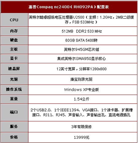 惠普Compaq nc2400