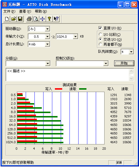 从测试数据可以看出,最高写入速度接近4.6M,最高读取速度超过10M,写入速度偏低,而读取速度接近于主流产品性能表现。