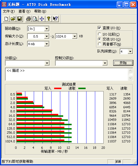 从测试数据可以看出,最高写入速度11M,最高读取速度接近13M,写入速度高于主流产品水平,读取速度也还不错。