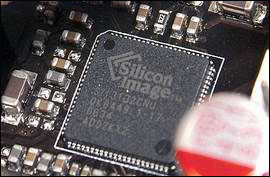 SiliconImage控制芯片提供了两个eSATA接口,ESATA是移动储存设备的接口,在移动硬盘普及的未来,这个接口可以大大方便用户的使用。