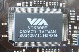 VIA VT6308P芯片提供了两个400Mbps速率的IEEE1394a接口,其中一个在I/O背板上,另一个需要通过针脚转接,这个接口可以使用户方便地连接大多数数码设备。