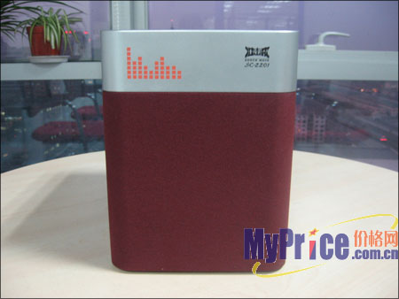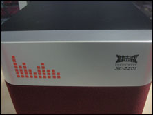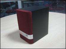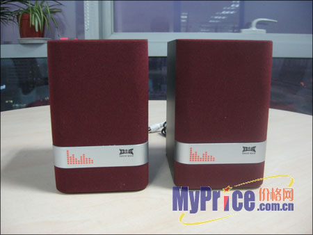 箱子棱角分明,只有前面板的左右边框采用弧形设计,前面板设计有暗红色的防尘罩,使得整个箱子看上去典雅而不死板。前面板的上部是一块银色区域,上面有冲击波的经典LOGO以及音箱型号,这块银白色也给箱子增加了些许时尚感,看上去并不单调。