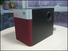 卫星箱的设计与低音炮差不多,唯一不同的是前面板的银色区域放到了底部,卫星箱采用的是3英寸全频单元。