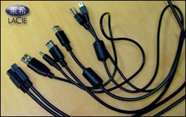 做为一款多接口产品,如果不配备好传输线的话大家自己配起来一定非常的麻烦,尤其是FireWire800传输线比较难找,价格又比较高。不过莱希已经为我们准备好分别的四根线(一根USB2.0数据传输线,一根USB2.0供电线,一个FireWire400数据传输线,一根FireWire800)数据传输线),这么全面的配线省去了我们很多麻烦。