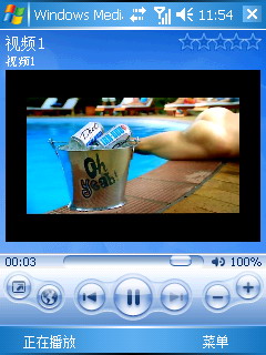 蓝色的底色很有XP的感觉,和电脑上的Windows Media Player播放器一样的操作方式极大方便用户使用。在视频播放时,横屏状态下会有更好的视觉效果。